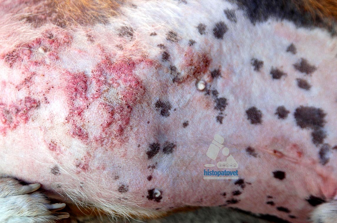 Anteriormente, por su pigmentación se describió como lesiones lentiginosas, posteriormente también debido a su pigmentación se clasificaron como nevus epidérmico pigmentado. Aspectos clínicos: en la literatura, están consideradas como de presentación infrecuente, sin embargo, su incidencia podría ser mayor ya que probablemente muchos casos no son analizados histopatológicamente. Generalmente son múltiples, aunque pueden ser solitarias. Miden de un milímetro a un centímetro, aunque pueden llegar a medir hasta 8.0 o más centímetros. Son oscuras(pigmentadas), ovoides-circulares, sobre-elevadas. Localizándose sobre todo en la región ventral del abdomen y tórax. Además, los miembros, zona medial-proximal (tanto uni como bilateral). Afecta generalmente a perros jóvenes-adultos. Se ha reportado una mayor incidencia en Pugs y Schnauzers miniaturas. También, en Boston terriers y French bulldogs. Generalmente, la formación de estas placas está asociada a estados de inmunosupresión, de ahí que actualmente con el uso de la ciclosporina, hay casos reportados en asociación al uso de esta droga. Ver fig. 8.