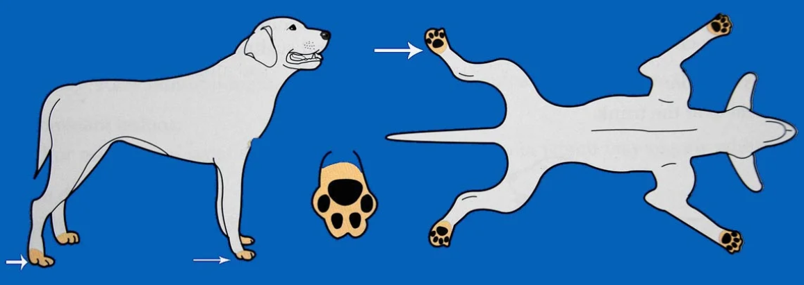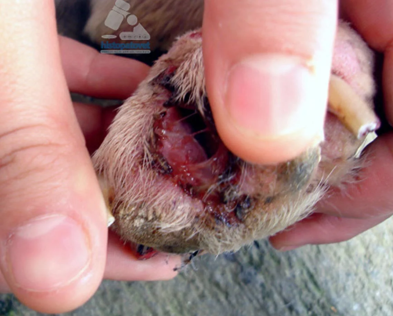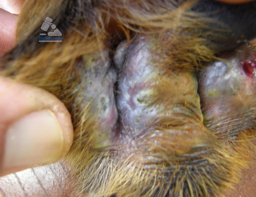 Incluso la literatura no distingue cuando la infección o patología afecta la porción de piel superior o dorsal de la mano o pata. Fig.3.