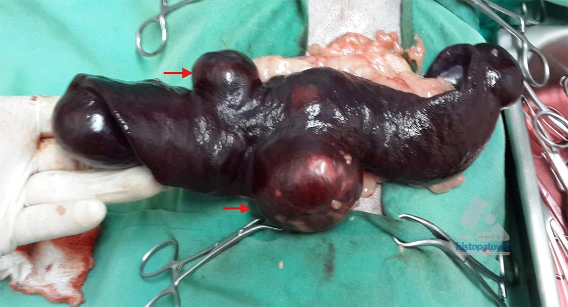 - El trozo de bazo de coloración rojo-oscura: Es una hiperplasia nodular o nódulos hiperplásicos.